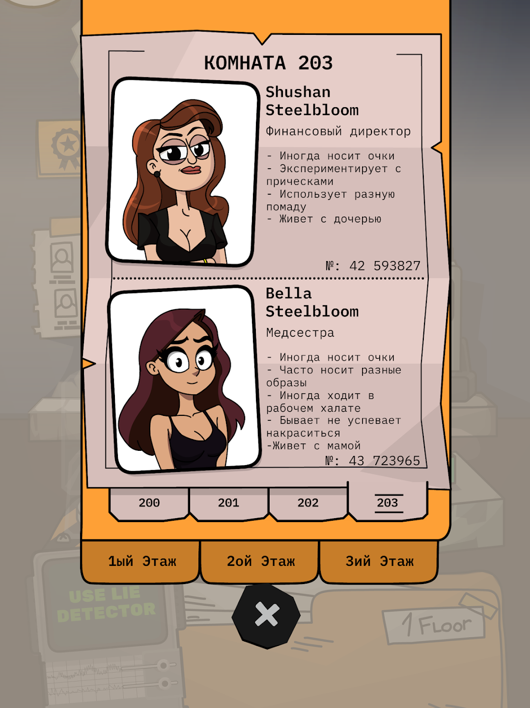- ✅ Допросы жильцов — задавайте вопросы, анализируйте ответы, ищите несоответствия.